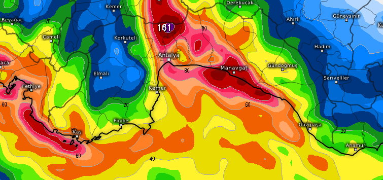 Antalya çevrelerinde halen devam etmekte olan yağışların kuvvetli şekilde aralıklarla ve yerel olarak Çarşamba akşam saatlerine kadar (18:00-20:00) devam etmesi bekleniyor. Çarşamba ilk saatler ile gece geç saatler arasında beklenen yağışların, bazı kesimlerinde metrekareye 51-100 kilogram arası yağış bırakması tahmin edildiğinden yaşanabilecek ani sel, su baskını gibi olumsuzluklara karşı Antalyalıların dikkatli ve tedbirli olması gerekmektedir.
