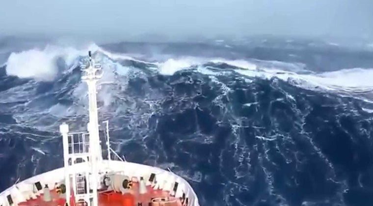 Bering denizinde geminin fırtına ve dalgalarla mücadelesi mürettebat tarafından böyle görüntülendi...