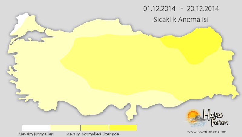 Türkiye genelinde sıcaklıklar mevsim normalleri üzerinde seyrediyor. Aralık ayının ilk 20 günü sıcaklıklarda dalgalanmalarla birlikte geneli mevsim normalleri ve üzerinde seyredecek. Daha önce yaptığımız uzun vade Aralık ayı tahminimiz aynen gerçekleşmektedir. Yağış açısından ise çoğu yer mevsim normalleri üzerinde yağışla aralık ayını kapatacak.